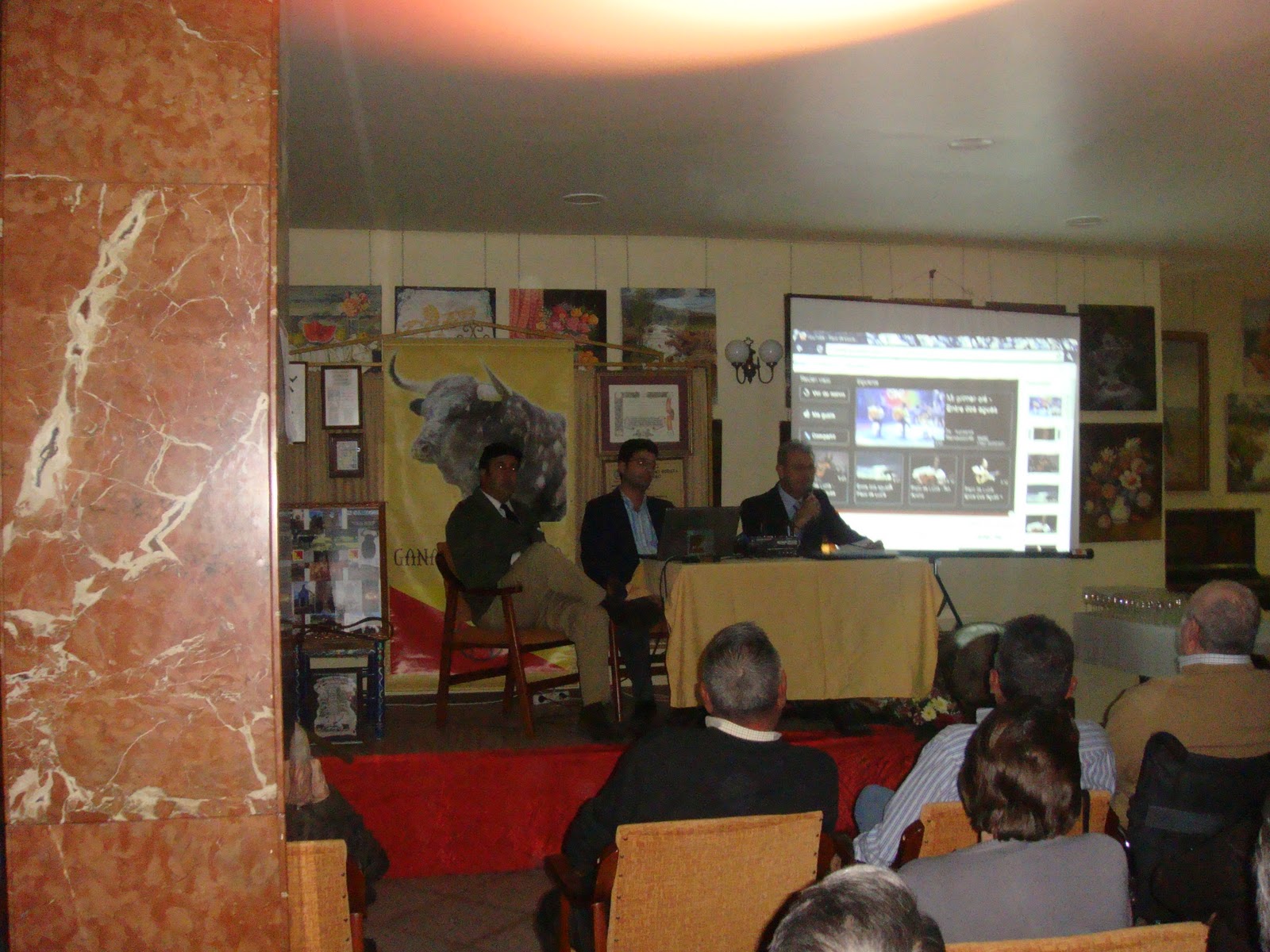 A continuación tomo la palabra Marcelino Acosta, desarrollando su conferencia La cría del toro bravo, un paso a través de cuatro años de la vida de un toro de lidia, desde que nace hasta que parte para la plaza. Apoyandose en material fotográfico, fue desgranando las entrañas del toro y la vaca en la dehesa, no paso por alto las innumerables faenas camperas que se acometen cada día en el entorno del rey de la fiesta.